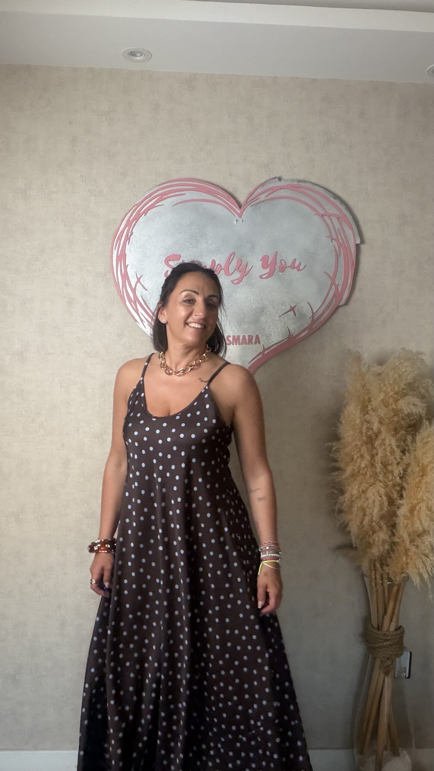 VESTIDO TIRANTES LARGO LUNARES BLANCO/MARRÓN